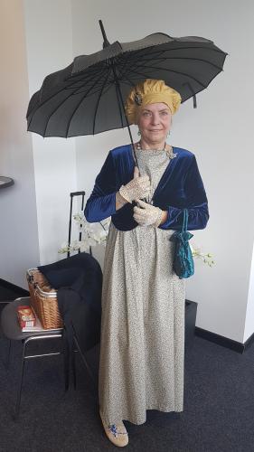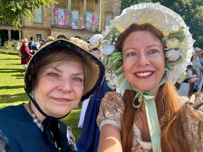 mehrfach zu Gast und berichtet in feinstem Gewand vor der Festwoche, die in diesem Jahr zu Ehren des 250. Geburstages von Jane Austen stattfindet.